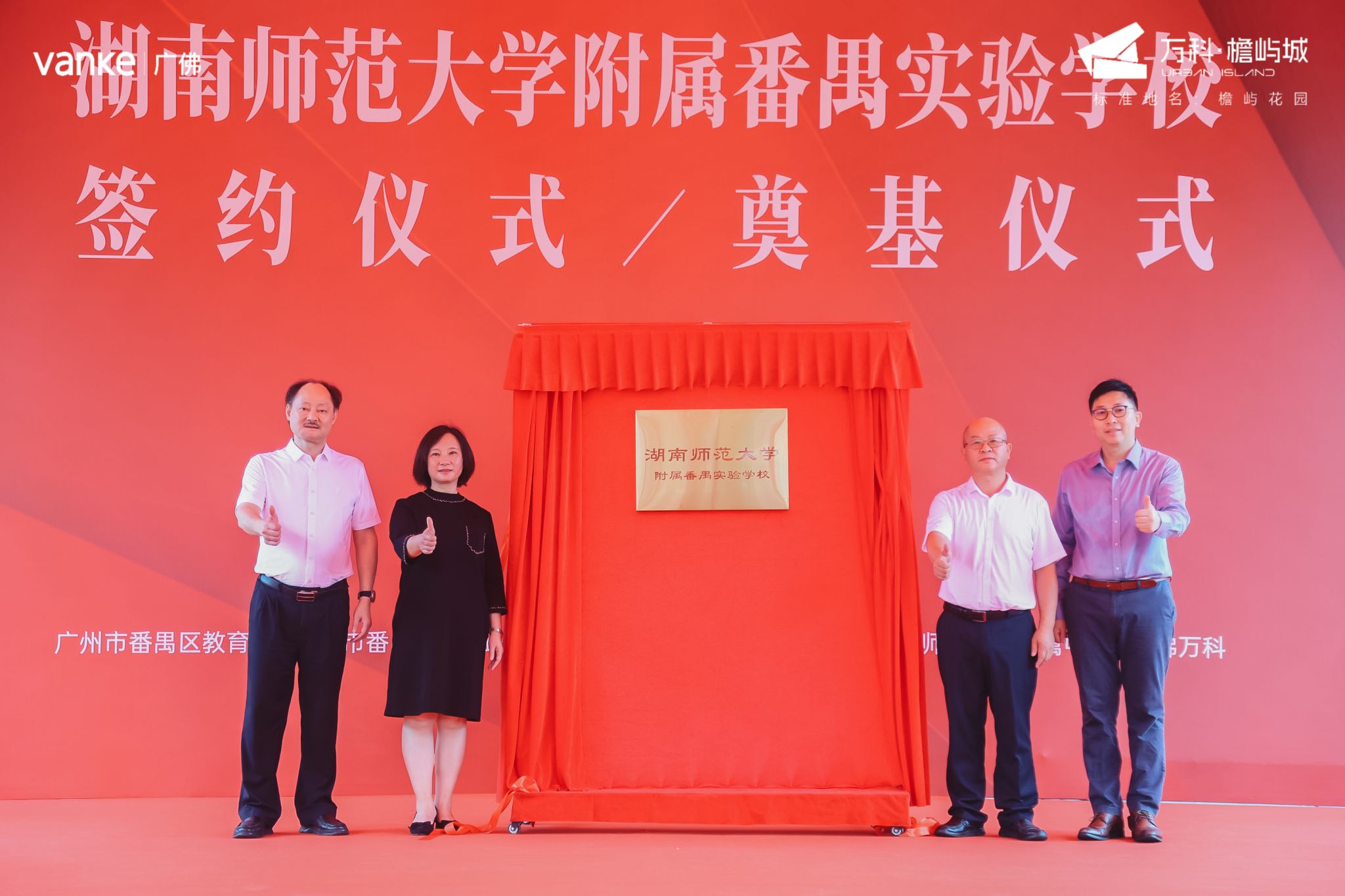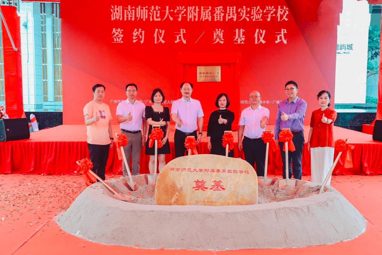 (通讯员 罗晓航)7月23日,湖南师范大学、湖南师范大学附属中学与广州市番禺区人民政府正式签署基础教育合作办学协议,签约仪式当天同步举行了学校奠基仪式。广州市番禺区教育局总督学黄春燕、湖南师范大学基础教育发展中心主任蔡炳华、湖南师范大学附属中学党委委员陈胸怀、万科广佛公司副总经理李庆松等出席活动。