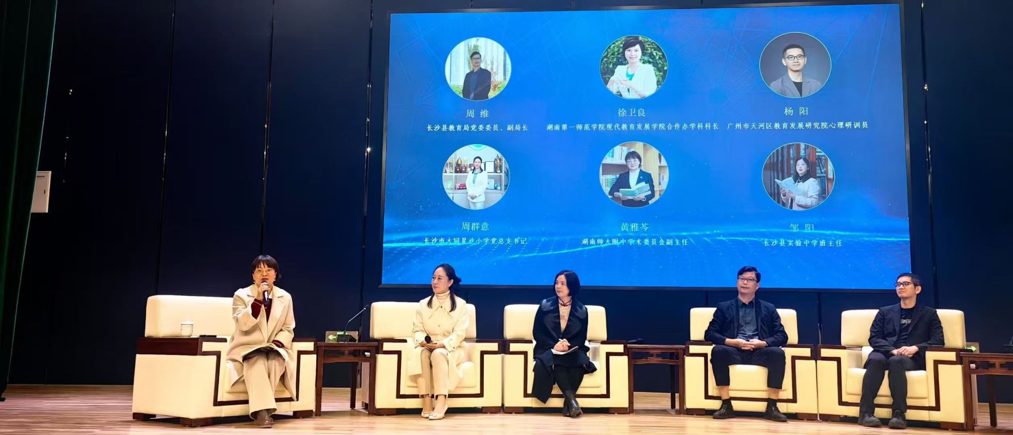 长沙县教育局与我校共同组织"同心共育 赋能成长"主题论坛。湖南省名校长工作室主持人周群意主持论坛。论坛邀请了长沙县教育局党委委员、副局长周维,湖南省特级教师、湖南师大附中学术委员会副主任黄雅芩等教育一线名师、教研员围绕班级文化建设、家校社协同育人、学生个性化发展支持等话题进行了交流研讨,为参训班主任专业发展提供了有益借鉴。