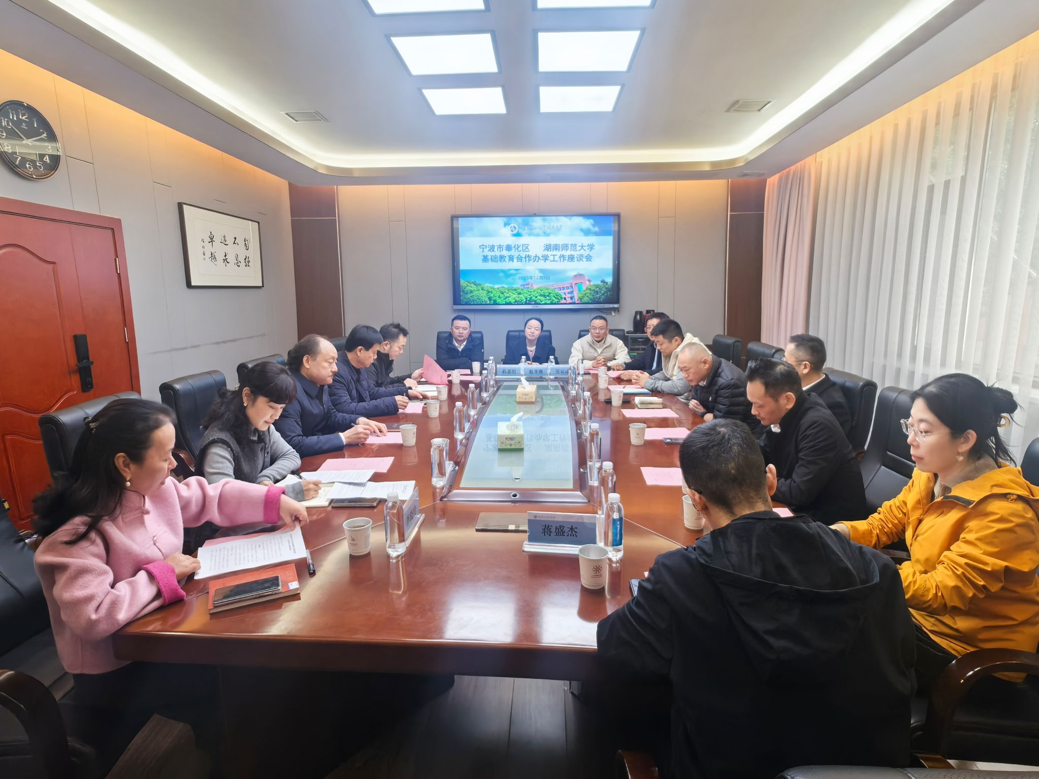 蔡炳华简要介绍了我校在基础教育领域的办学特色与资源优势。他指出,我校积极推进优质教育资源均衡配置,近年来通过附中、附小协作体等平台,在课程创新、师资培养等方面积累了丰富经验,期待与奉化区探索合作新模式,共同打造区域教育标杆。